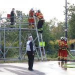 Die Markgröninger Mannschaft bestand erfolgreich die Abnahme in Bronze – hier musste eine Fahrzeugbesatzung aus neun Feuerwehrleuten innerhalb von 420 Sekunden einen Löschangriff mit zwei Strahlrohren durchführen und eine Person aus dem 1. OG über eine Steckleiter retten.