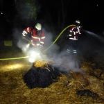 Beim Eintreffen brannte ein Strohballen im Pausenhof der Realschule, der mit einem C-Rohr unter Atemschutz abgelöscht wurde.
