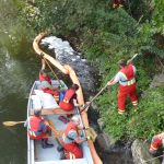 Die Feuerwehr brachte mit dem Mehrzweckboot eine Ölsperre aus. Anschließend wurden die Kanaleingänge in Absprache mit der Wasserbehörde des Landratsamtes gespült. Das Öl auf der Wasseroberfläche konnte anschließend gebunden und abgeschöpft werden.